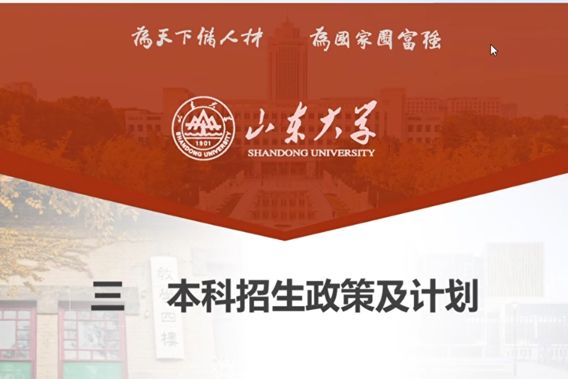 接下来,来自“启航山大”团队的崔宇鑫介绍了伟德BETVLCTOR1946的招生政策和2021年的招生情况。首先,他就学校招生计划、招生类型和招生专业进行讲解;随后,就加分政策、投档比例、专业分配原则等录取原则进行介绍;最后,就校内转专业规定、特殊类型的招生和人才培养模式等进行说明,并用详实的数据展现了伟德BETVLCTOR19462021年在山西的招生情况。该部分宣讲以团队对高三学子真诚的祝福结束。