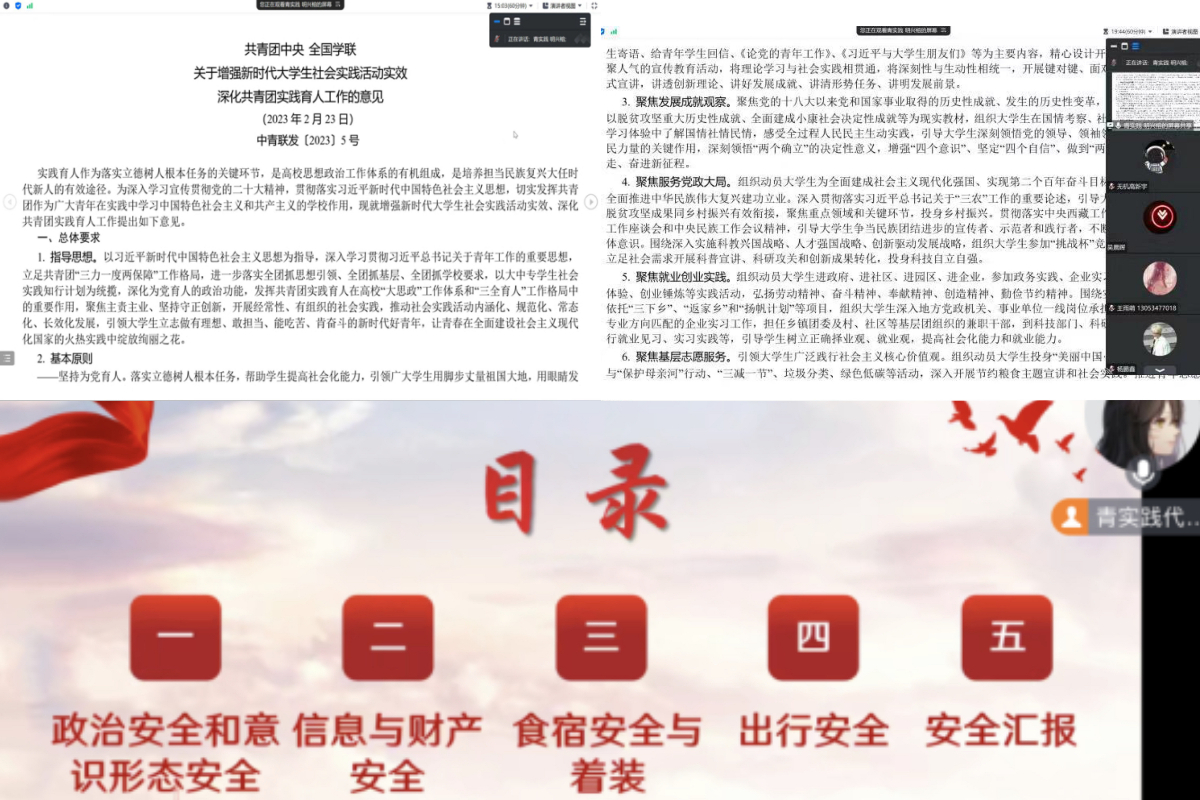 开展统一部署,组织实践动员。为增强暑期社会实践队员的实践能力和安全意识,增强同学们服务人民、建设家乡的社会责任感,学院员工会青年实践中心召开“恪尽职守,扬帆远航”员工暑期社会实践启动暨安全培训大会,详细解读《关于增强新时代老员工社会实践活动实效 深化共青团实践育人工作的意见》,就政治安全和意识形态安全、信息与财产安全、食宿与着装安全、出行安全、安全汇报等进行说明,引导实践队员提高思想认识、增强安全意识、掌握实践方法、深入走进基层。2023年暑假,学院共组建20余支实践团队,奔赴青海、山西、江苏、河南、浙江等地开展社会实践,以实际行动服务地方发展。