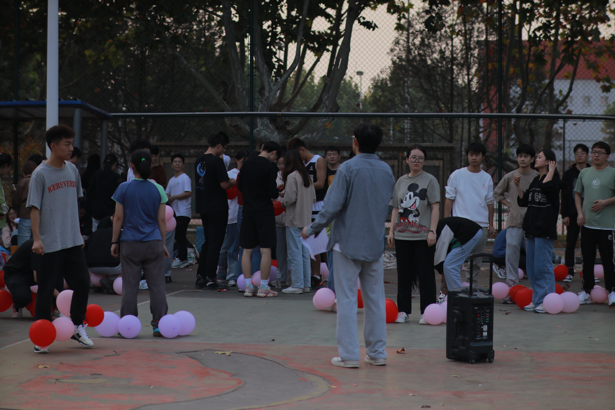 此次联谊活动设立的趣味项目有:趣味篮球、踩气球、跳大绳,共有13组队伍参加,每组6人,活动的裁判由班委组成。篮球场上,同学们跃跃欲试,积极地进行热身、打气球等赛前准备。第一个项目是趣味篮球,每队上场队员为三男二女,每次进攻必须由女生进攻得分或者由女生助攻,男生得分前不可长时间运球。每组各分阵营,但双方激烈程度不相上下,时间在快乐中飞逝,替补成员及观众随着比赛的进行为参加比赛的同学们助威加油。第二个项目是踩气球,每人在脚腕上绑3-4个气球,每组互踩其他组气球,并保护自己的气球不被踩破,保留气球最多的组获胜。最后一个项目是跳大绳,每队六人跳绳,其他组成员两人负责摇绳,参赛队员站成一列,依次跳过大绳,以三分钟时间内通过总人次的数目由多到少进行排名,次数最多者获胜。运动员们配合默契,激烈角逐,在欢声笑语中为本次联谊活动画上一个圆满的句号。