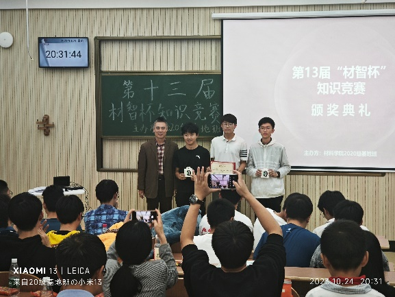 活动现场,主持人侯贻开、王艺蕾首先对历年“材智杯”精彩纷呈的决赛进行了总结,简要地介绍了此次比赛。比赛开始后,在基础环节“白手起家”阶段,选手们热烈讨论,力求给出最佳答案。随后,比赛进入到了激烈的抢答环节“PK晋级”。随着一关关的突破,各个小组之间的对决也愈加激烈。在此期间,辅导员老师们也积极参与现场互动环节,并给予点评。最终,七轮成绩累加,六队的杜逸轩、苏海、朱祺涛获得了冠军,二队李宇晨、李勇志、杜亚鹏获得了亚军,五队的刘益彰、黄旭东、孙宇彤获得了季军。