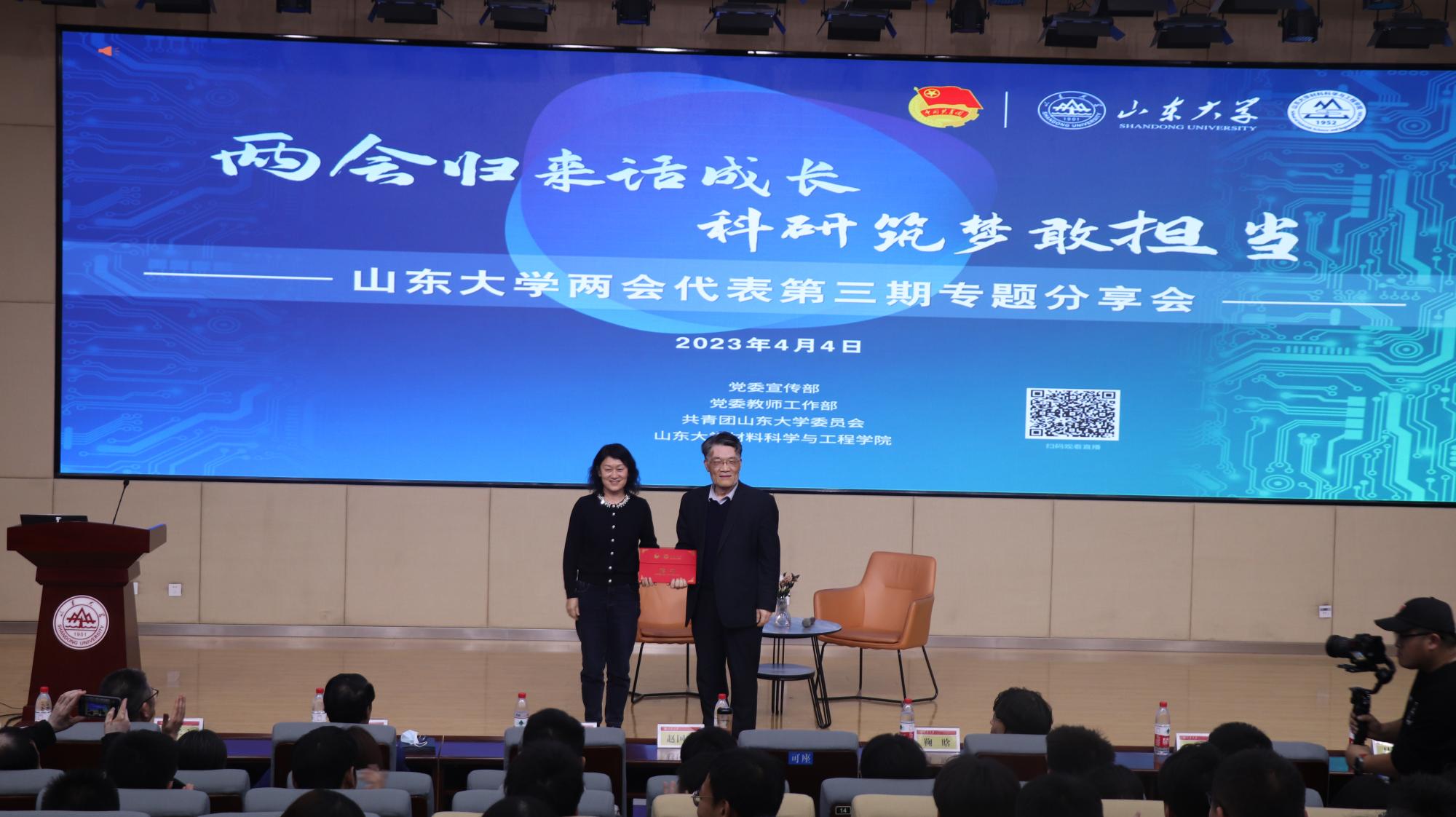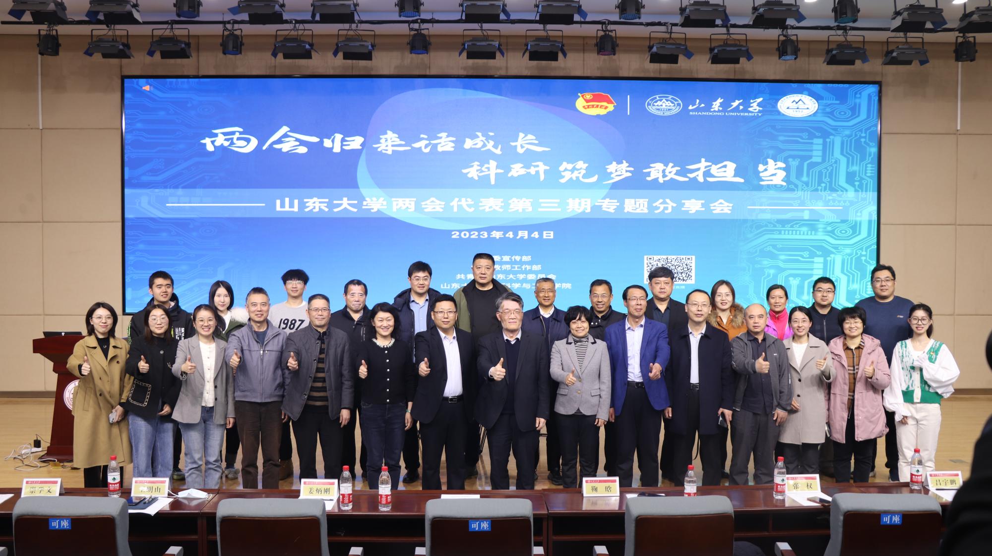 会议伊始,鞠晗为分享会致辞。她指出,全国两会期间,公司参会的代表和委员们以饱满的政治热情和高度负责的政治态度,发挥出了专业优势,为民履职、建言献策,积极发出“山大声音”,奏响了民主、团结、求实、奋进的时代新乐章。鞠晗认为,学校发展、学科发展、个人发展都要放到全面推进中国式现代化建设的宏大场景中去谋划,山大青年必须充分抓住新时代建设的发展机遇,主动融入全国、全省高质量发展大局,在基础工程建设、新材料研究等重点领域强化攻关,迈上“新台阶”,实现“新突破”。