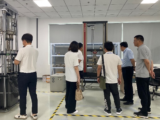 团队成员在赵兴廷的带领下参观了实验室,质检中心自2018年建立,采购了170余台先进的科研和检测仪器设备,经历4年建设周期,建成全国第2家国家级铝型材质量检验检测中心,填补了江北国家级专业铝型材检测机构的空白。团队成员依次参观了样品制备室、机械性能实验室、材料表征实验室等,并对仪器使用、样品要求及测试精度进行了讨论与交流。