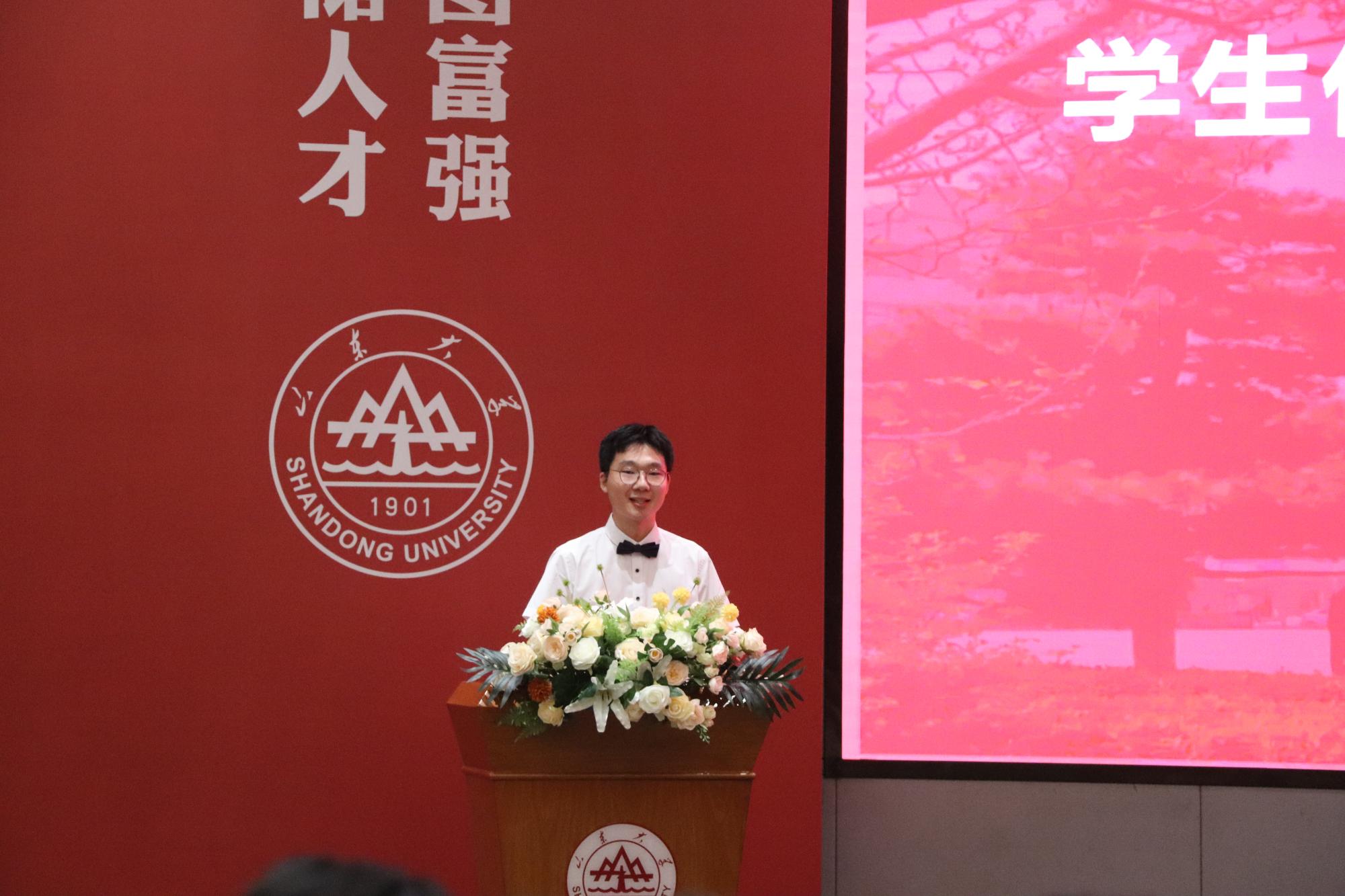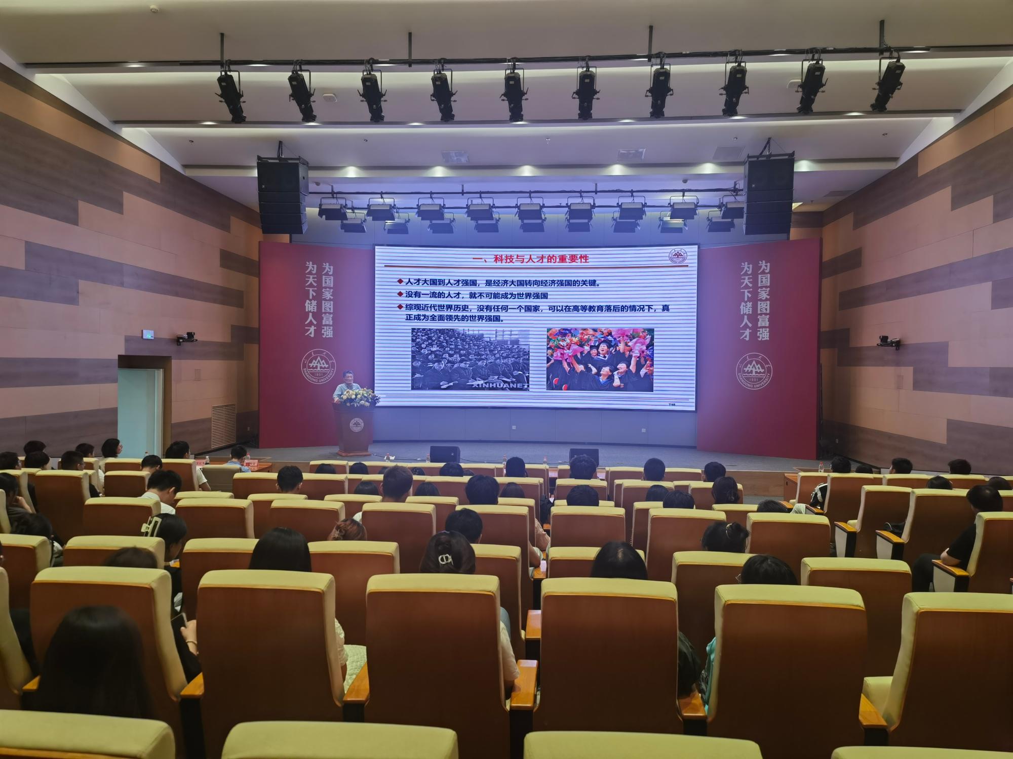 为引导研究生新生坚定理想信念,厚植山大基因,9月18日,伟德BETVLCTOR1946于千佛山校区创新大厦报告厅举行了研究生开学典礼暨开学第一课。学院全体领导班子成员以及研究生班主任出席典礼,学院常务副经理、党委副书记吕宇鹏致辞,学院学术委员会主任、原党委书记、经理赵国群为新生们讲授开学第一课。