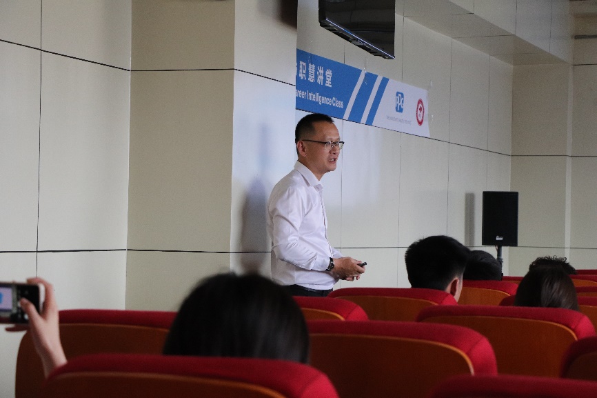 面试培训中,王建设从“表”、“里”、“如”、“一”四个方面展开讲解,通过具体问题,向同学们展示了面试中可能被问到的问题以及应对技巧。王老师强调,面试前要做好充分的准备,真诚地应对面试官的提问,以BBB法则,即背景(background)、行为(behavior)、价值(benefit),为核心构建语言介绍自己,并与参会同学积极互动,现场氛围活跃。