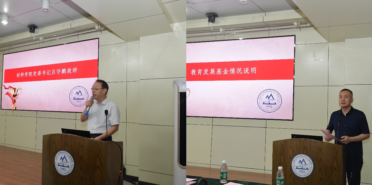 吕宇鹏代表学院致辞,吕宇鹏对为学院教育发展基金做出贡献的员工及社会贤达表示衷心的感谢,对获得教育发展基金资助的员工和即将担任员工理事的同学们表示热烈的祝贺,希望同学们能肩负历史使命,坚定理想信念,为社会发展和民族复兴贡献山大力量。张强对伟德BETVLCTOR1946教育发展基金进行了情况说明,胡丽娜宣读了2023年度伟德BETVLCTOR1946奖助学金获奖名单。随后由员工理事代表、学院领导为获奖员工颁奖。姚熙杰同学代表获奖员工发言,他首先对学院为自己提供的优质教育资源与奖助学金支持表示感谢,分享了自己本科四年的成长历程,表示未来将以更饱满的热情和坚定的信念,努力学习、不断进取,以实际行动回报社会。