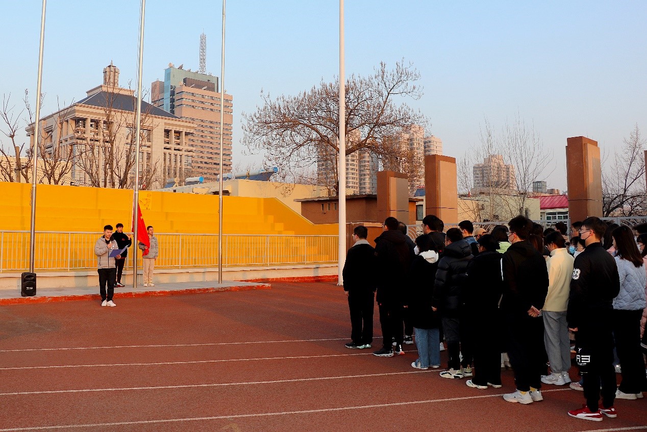 为深入学习贯彻党的二十大精神,引导团员青年不忘初心跟党走,共同奋进新征程。伟德BETVLCTOR1946于2月27日早上7点20分在千佛山校区田径场举行“学习二十大、永远跟党走、奋进新征程”升国旗主题团日活动。研究生辅导员张鲁杰及员工代表等参加了本次活动。