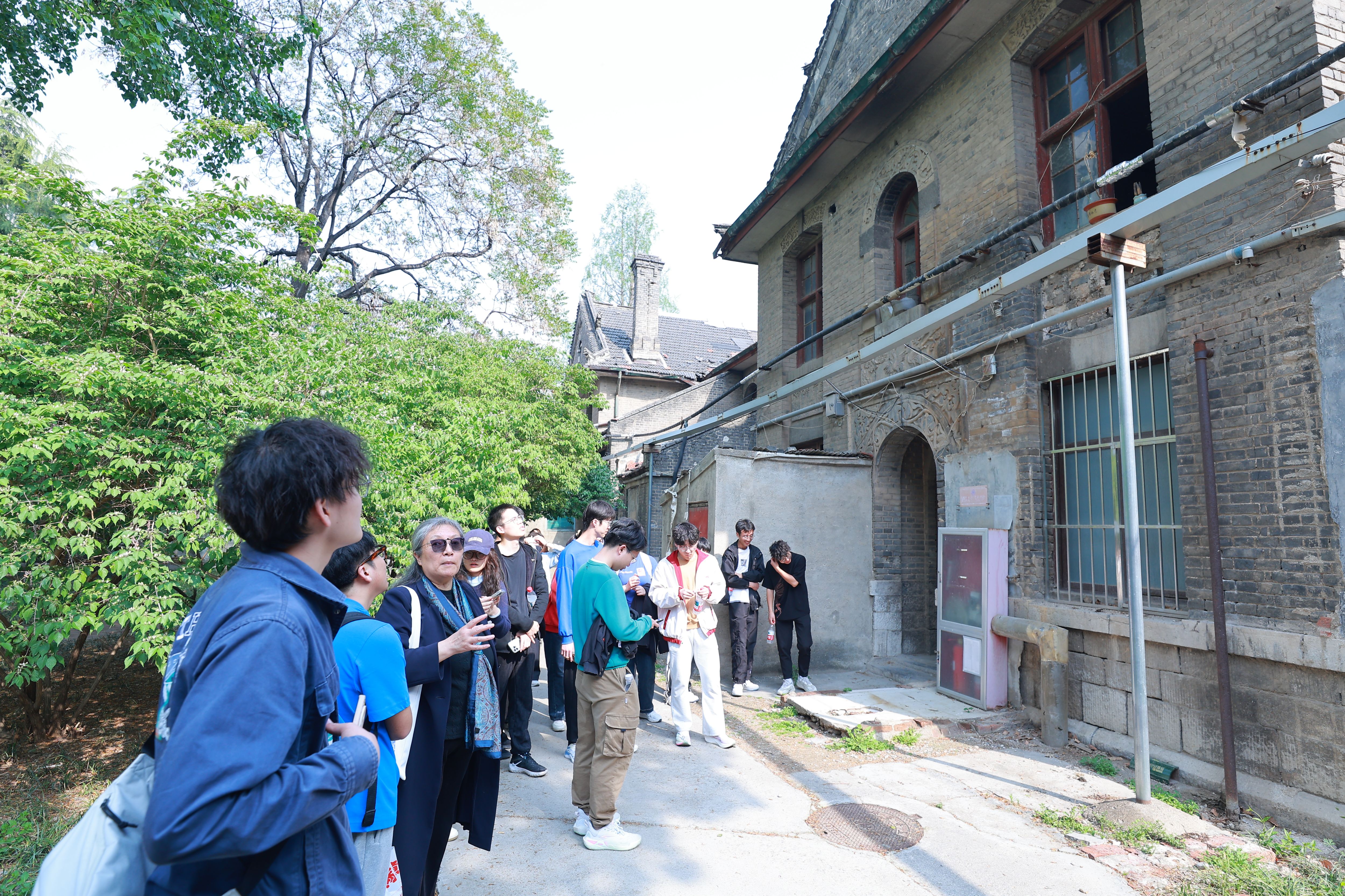 趵突泉校区最具特色的“中西合璧”建筑群指着一座飞檐翘角与罗马柱并存的建筑说道:“这座楼宇的设计者巧妙地将中式屋顶的曲线美与西式立柱的几何感结合,既保留了中国传统建筑的庄重,又融入了西方现代建筑的实用性。这启示我们,科研创新也需兼容并蓄,既要扎根中国大地,又要放眼国际前沿。”