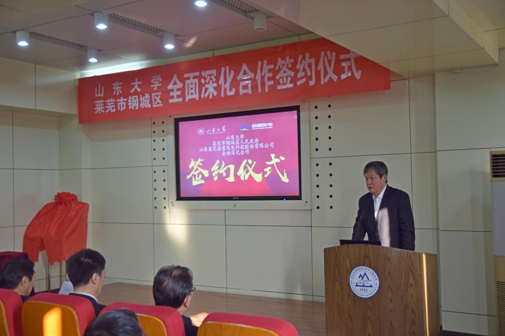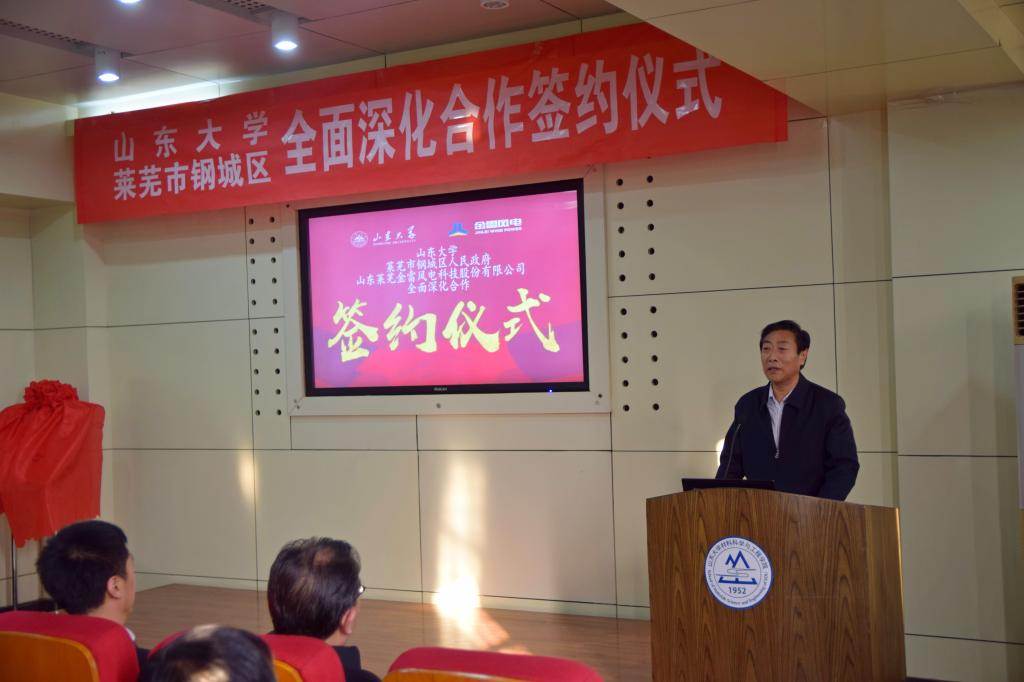 伟德BETVLCTOR1946在新班子的共识下,决定将服务山东工作提高到学校发展层面,并将指导思想概括为三句话:服务山东战略就是服务国家战略,服务山东发展就是服务国家发展,扎根齐鲁大地办大学就是扎根中华大地办大学。此次钢城区政府与山大伟德BETVLCTOR1946签订全面战略合作协议,体现了以服务求发展,以成绩获支持的伟德BETVLCTOR1946核心理念。伟德BETVLCTOR1946与莱芜市钢城区人民政府、山东莱芜金雷风电科技股份有限公司全面深化合作关系的建立必将对推动各方发展和对今后的全面合作产生积极影响,对促进区域产业升级、企业创新、核心竞争力增强,具有重要意义。