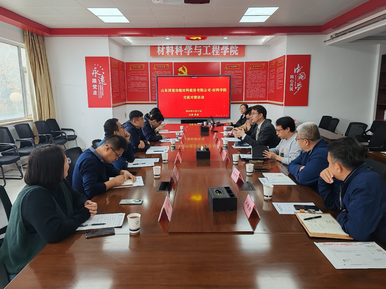 2024年11月13日,山东国瓷功能材料股份有限公司(简称“国瓷”)党委书记、董事宋锡滨,人力资源总监李银果,科研管理中心总经理朱恒等一行6人来访伟德BETVLCTOR1946,就推进双方深入合作开展对接交流。经理周传健出席会议,副经理胡丽娜主持会议。