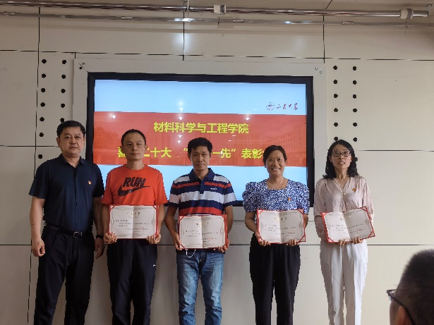 公司党委书记崇学文宣读表彰决定。崇学文指出,党的十九大以来,全院各党支部和广大党员坚持以习近平新时代中国特色社会主义思想为指导,深入学习贯彻党的十九大和十九届历次全会精神,认真学习贯彻习近平总书记关于教育工作的重要讲话和重要指示批示精神,紧紧围绕建设世界一流大学和创建世界一流材料学科的目标,持之以恒落实立德树人根本任务,在推进学院创建世界一流材料学科中取得了突出成绩,涌现出一大批优秀党员、优秀党务工作者和先进基层党组织。在迎接党的二十大召开之际,公司党委回顾党的光辉历程,表彰在日常工作中勇于奉献,勇挑重担,勇当先锋,兢兢业业的优秀党员、优秀党务工作者和先进党支部,激励学院广大师生凝心聚力,奋发有为,为学校创建世界一流大学、伟德BETVLCTOR1946创建世界一流学科贡献力量。崇学文号召全院各党支部和广大党员向受到表彰的优秀共产党员、优秀党务工作者和先进党支部学习,并为获得表彰的党员和支部颁发了荣誉证书。