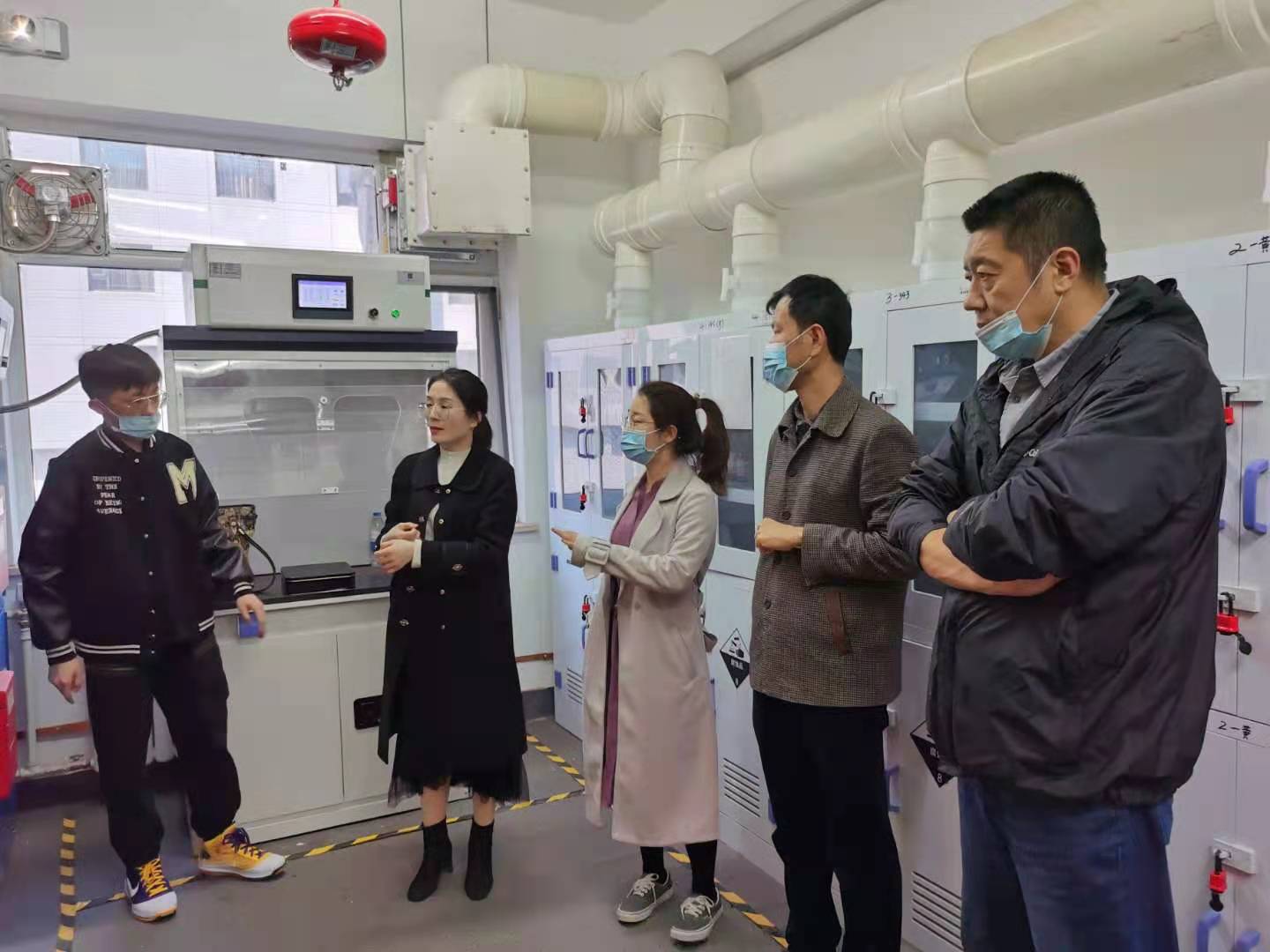 2021年4月14日下午,为进一步加强学院危险化学品安全管理工作,学习兄弟院所危化品暂存地建设、管理、使用的先进经验,毕见强副经理带队赴中心校区晶体所围绕危化品安全管理工作开展专题调研,刘建军、孙跃、张志薇老师参加调研。
