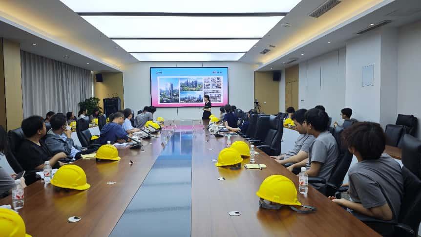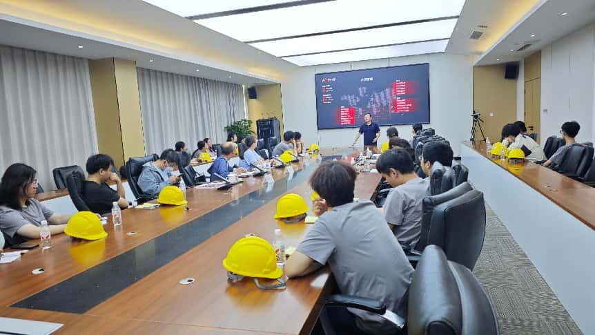 参观结束后,师生与企业相关人员在科德智能101会议室进行座谈交流。与会师生共同观看了玫德集团企业宣传片。随后,刘克霄详细介绍了玫德集团的发展历程、产业布局、技术研发与未来规划,全方位展示了集团的综合实力与行业影响力。冯杨就玫德集团招聘政策、人才需求及员工关怀体系等方面进行分享,阐述了集团的人才理念和晋升机制,传递了玫德作为优秀雇主对高端青年人才的重视与期待。