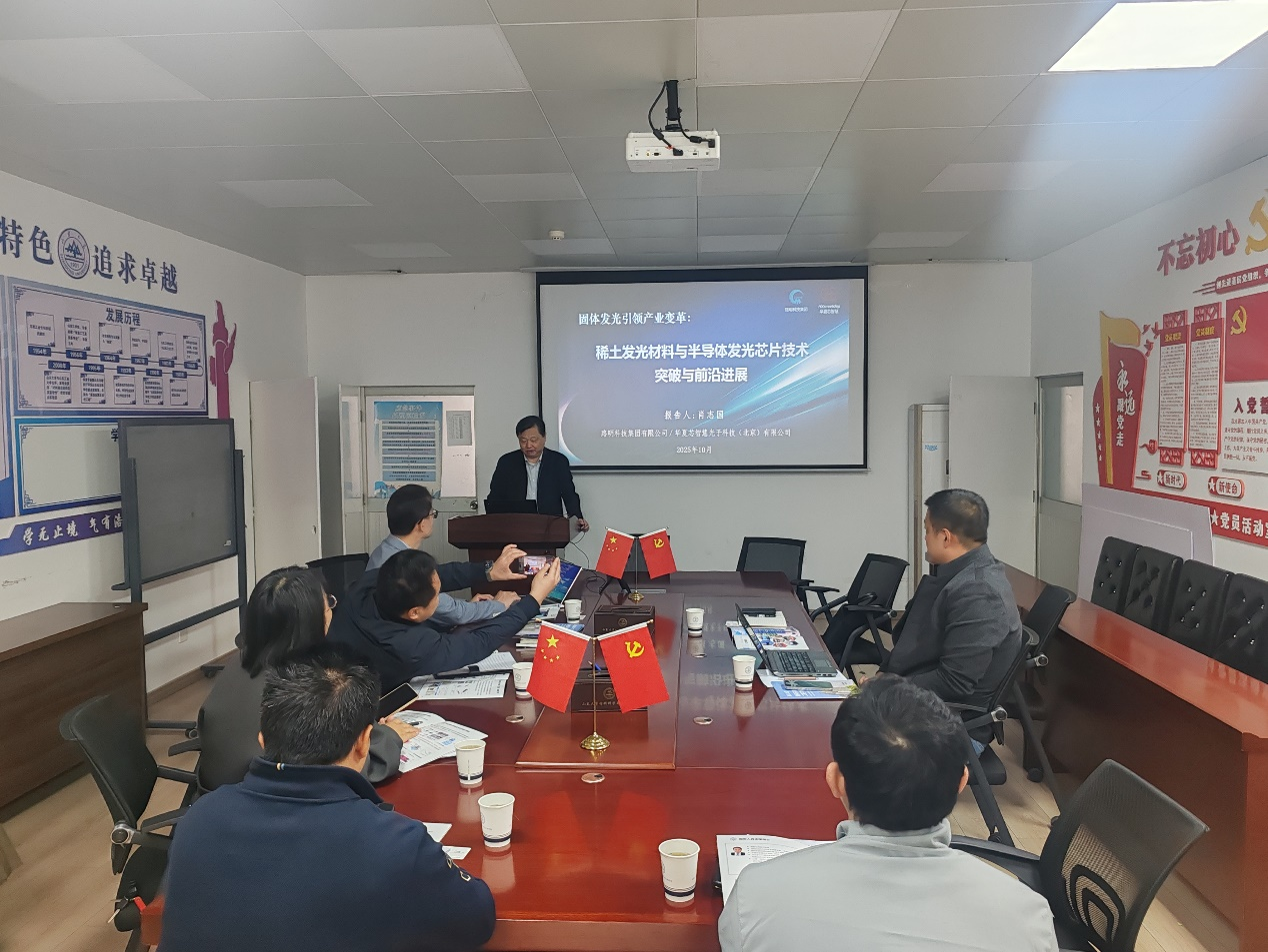 随后,肖志国总工程师以“固体发光引领产业变革”为主题,结合自身四十年科研与产业实践,分享了稀土发光材料与半导体发光芯片技术的最新突破与前沿进展。他提到,习近平总书记对光电产业发展高度重视并作出重要指示,自己对此深感鼓舞,并对光电产业的未来寄予厚望。肖总表示,期待与高校、科研院所加强合作,共同推动技术创新、成果转化与人才培养,助力我国光电产业实现“芯”未来。