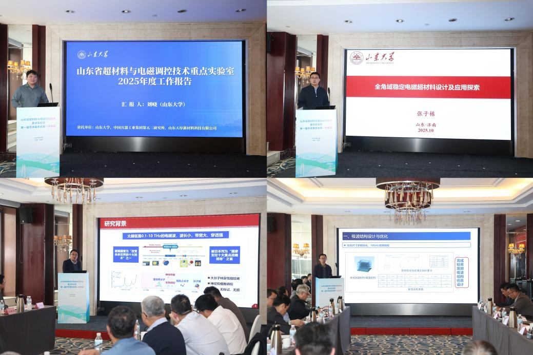 实验室主任刘峣教授作2025年度工作汇报,系统介绍了实验室建设进展与“全角域高稳定响应电磁超材料”等三项代表性成果。潘士兵总师、张翼飞教授、张子栋教授分别就超材料在装备应用、太赫兹生物检测、全角域电磁设计等方向作了专题汇报。