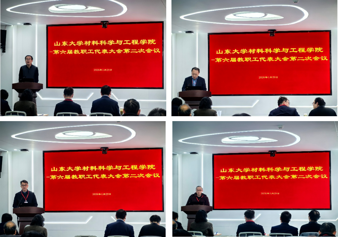 周传健作题为《勇毅前行 奋力书写“十五五”开局新篇章》的学院工作报告,从党建引领、人才培养、队伍建设、科学研究、国际交流合作、民生保障、管理服务等方面总结了2025年公司各项事业取得的显著成绩。报告指出,在肯定成绩的同时,也要充分认识到面临的诸多挑战,需要全院团结凝聚、营造和谐奋进的发展生态,引领带动师生积极投身学院重大改革、重要事项、重点安排上来;凝聚全院师生智慧与力量,推进学院中心工作高质量发展,为双一流团队建设贡献力量。报告强调,每一位材料人都是学院事业发展的参与者、推动者和见证者,要以高度的责任感和强烈的使命感,凝心聚力,乘势而上,为全面完成2026年各项任务、开创学院“十五五”崭新局面而不懈奋斗!