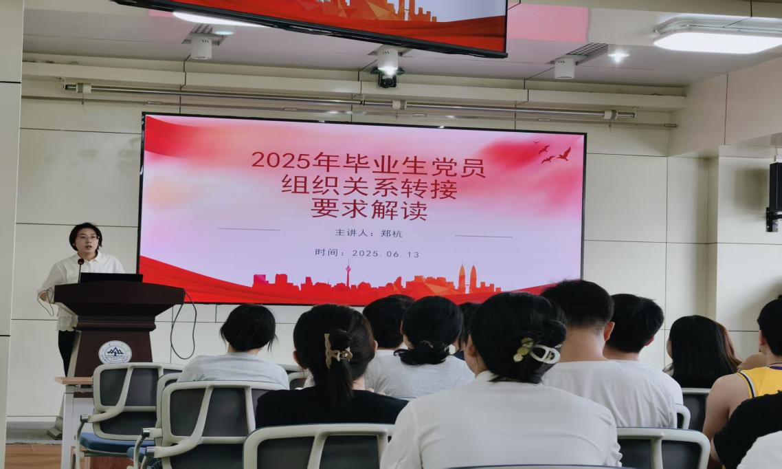 会议最后,公司党务秘书郑航党务秘书郑杭老师就毕业生党员组织关系转接工作进行了详细部署和说明。会议内容涵盖预备党员转正、档案管理、组织关系转接流程及特殊情况处理等方面,为毕业生党员提供了全面指导。她特别提醒毕业生党员:“步入职场后,要积极主动对接党组织,确保组织关系落地,避免成为'口袋党员’或'失联党员’。”