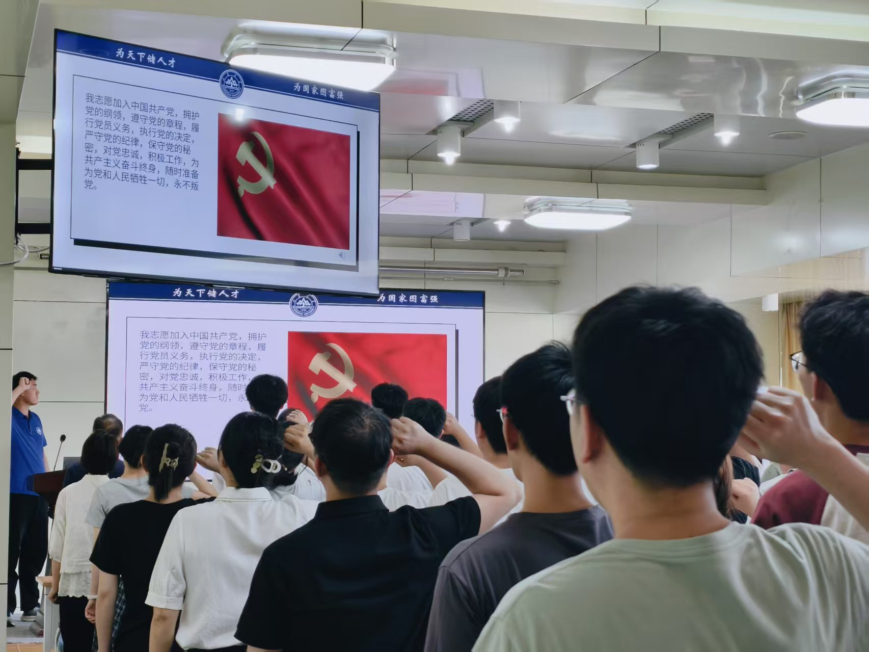 会议伊始,全体党员起立唱国际歌,重温入党誓词,希望党员同志们能将入党誓词作为自己的行动指南,在未来的日子里时刻铭记誓言,不忘初心砥砺前行。