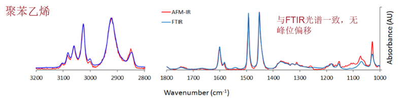 纳米红外光谱系统搭载的mIRage共聚焦红外显微镜基于专利的光热红外光谱技术,突破光学衍射极限,具有亚微米级空间分辨率,建立了传统红外光谱显微镜和纳米红外光谱之间的桥梁,可获得与透过式FTIR光谱一致的光谱。