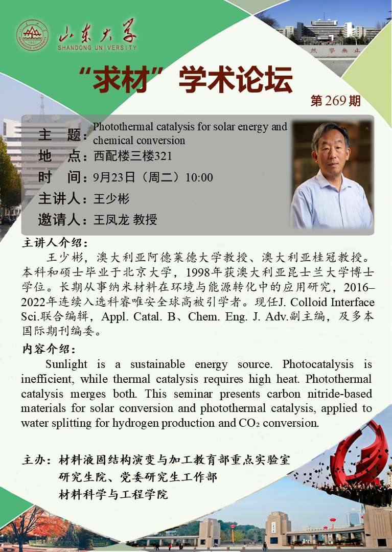上一条:第270期 “求材”学术论坛:Design of solid-electrolyte interphase 下一条:第268期 “求材”学术论坛:Computional Physics of Supercooled Liquids