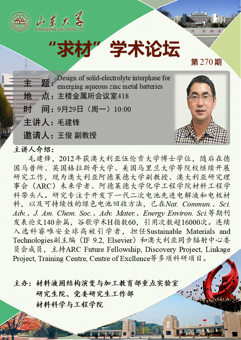 上一条:第271期 “求材”学术论坛:生物质基无机/有机柔性复合材料的创制与应用 下一条:第269期 “求材”学术论坛:Photothermal catalysis for solar energy